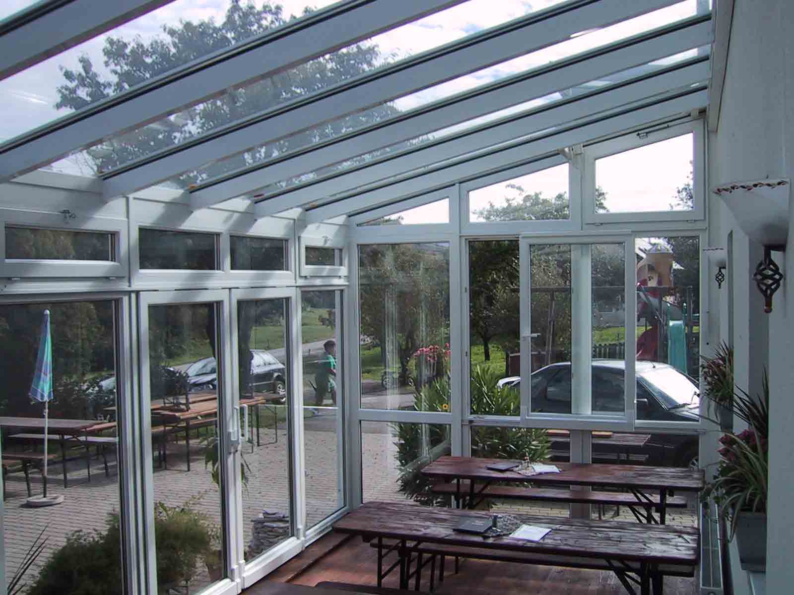 Wintergarten Schmidinger mit Aluminium Konstruktion Sunflex Schiebetüren SF 20, Elemente Schiebeverglasung
