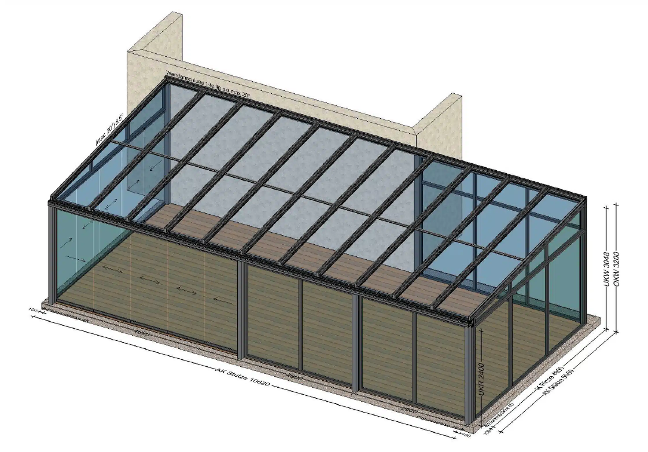 Dachkonstruktion Terrassenüberdachung Aluminium-Glas