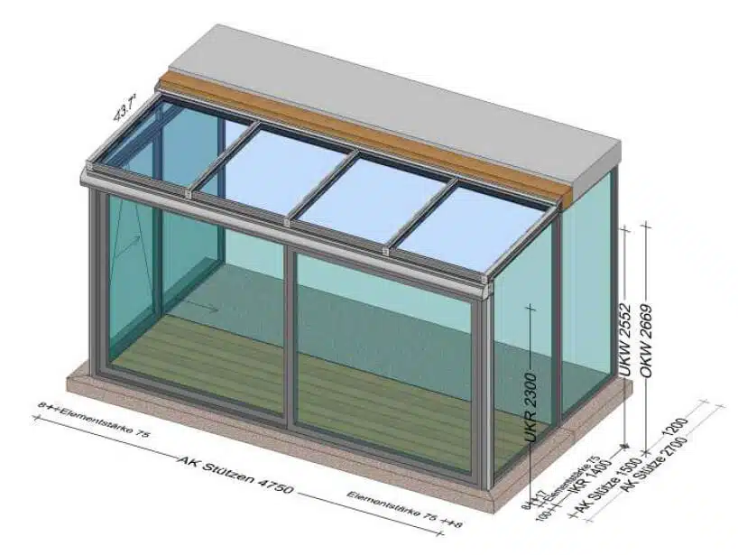 Terrassenüberdachung mit Teilverglasung Schiebewände und Fixteil