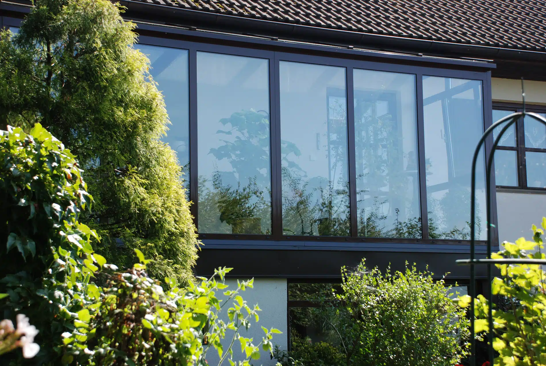 Wintergarten mit Glasschiebetüren an Hauswand montiert