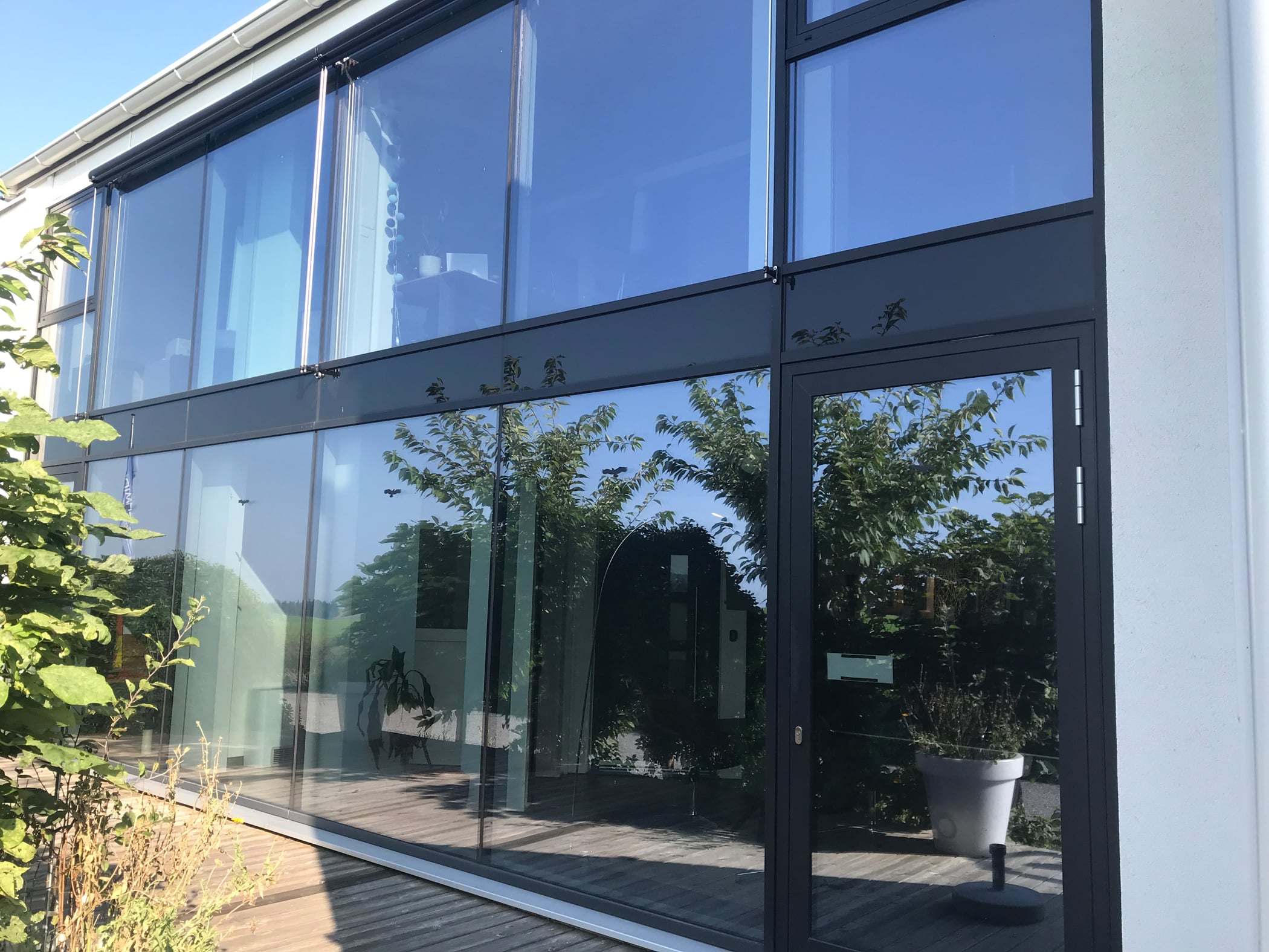 Terrassen Falttüren Aluminium - Farbe grau mit Wärmeschutzglas