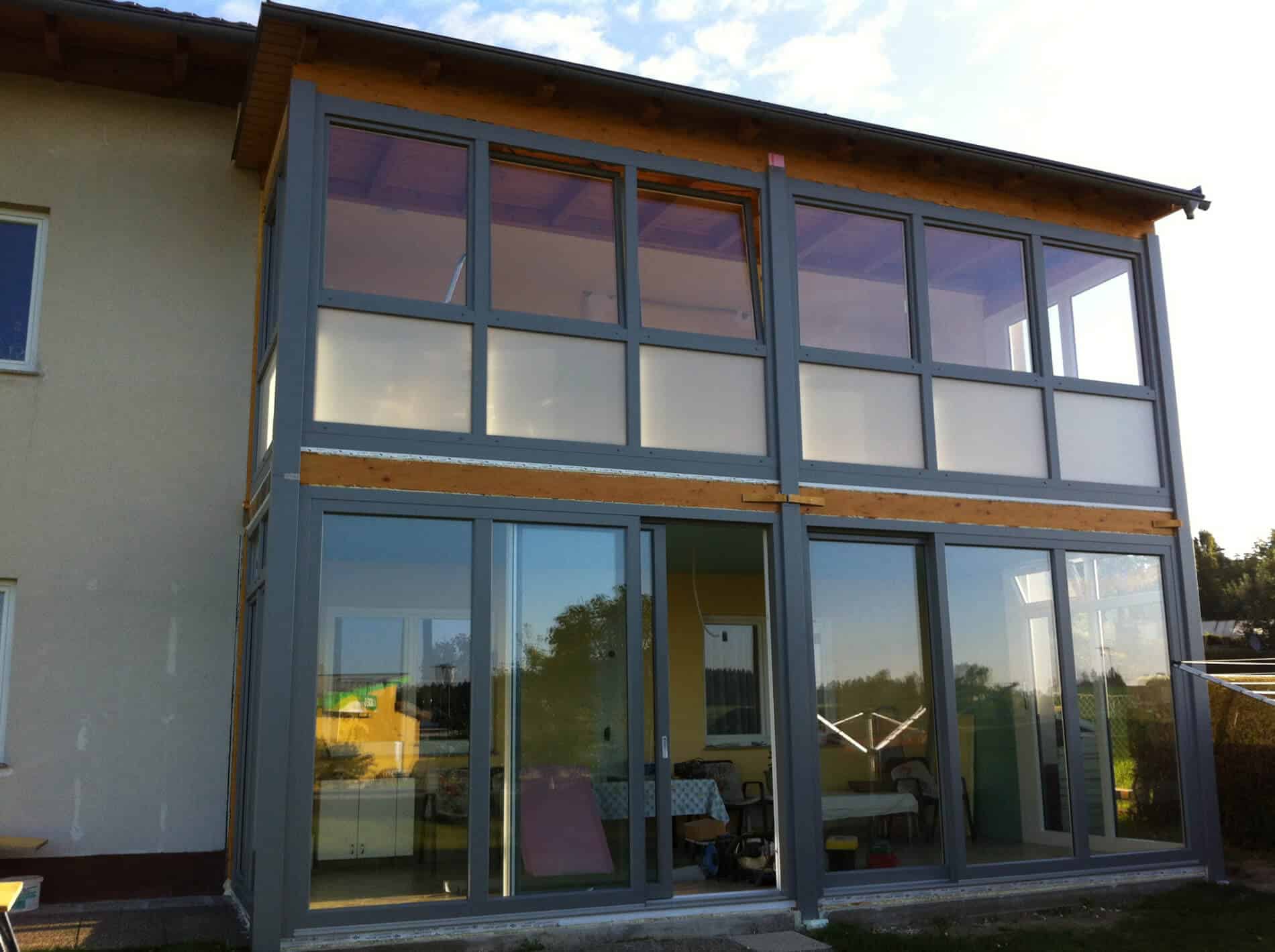 Schiebewand Schienensystem in Alu und Glas in Oberösterreich montiert